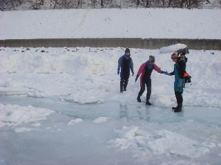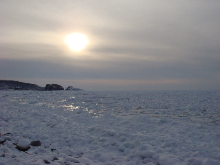 海が怖い私でしたが、生まれて初めて流氷の上を歩き、そして、流氷の溝から覗く海の中に入りました!!!
