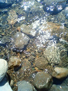 広い河原、澄み切った水が山々をすり抜けて流れていきます。