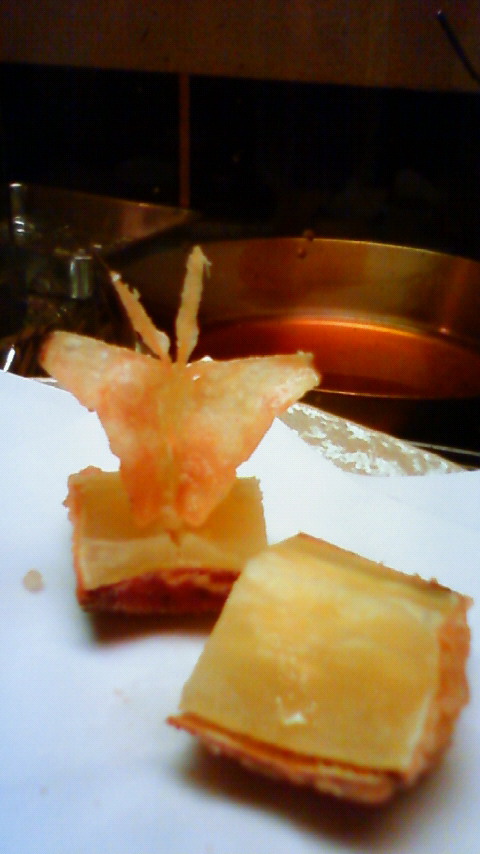 魚介類や季節のお野菜を頂いた後、さつまいもの上に蝶が止まっていました!