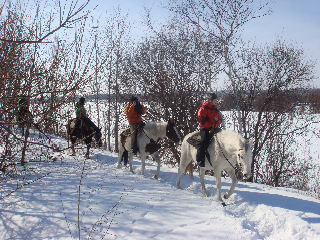 まずは雪原の中を乗馬。