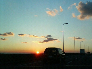 東京から実家に戻るとき、とてもきれいな夕陽が見えました。