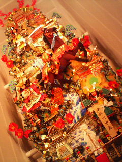 今福岡は山笠祭り中で、街のいたる所に飾りが展示してあります。