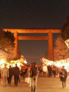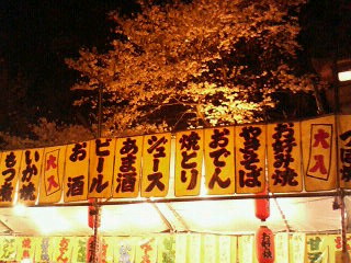 盛り上がってました!夜にうっすら街灯りで、桜の枝がお堀まで枝を