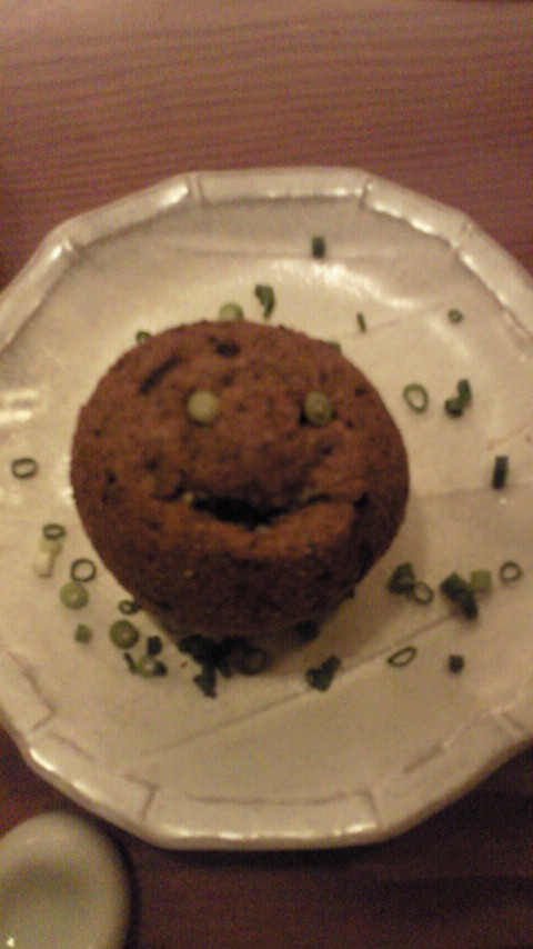 あんまり美味しくて可愛いかったので、ネギで顔を付けて写真を撮りました。