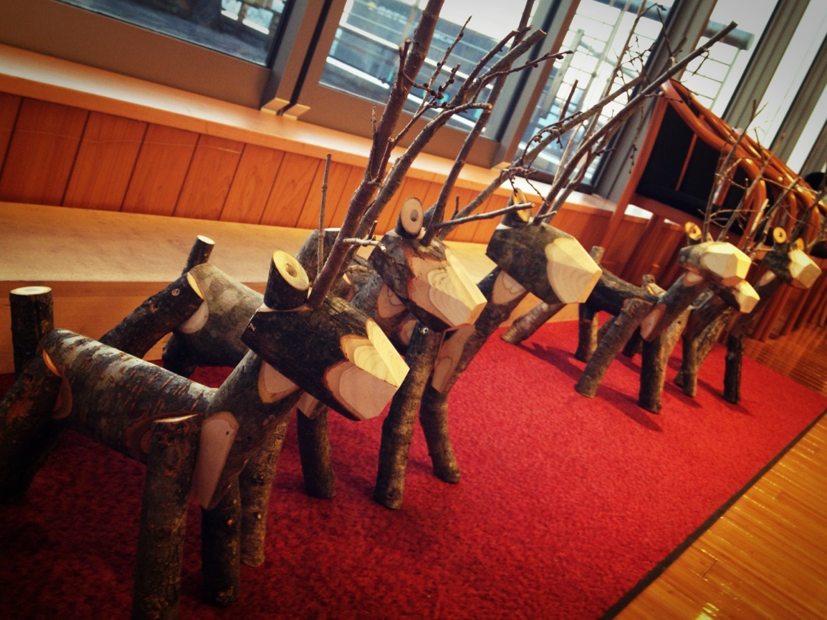 お土産に、清里の森の木で作られたトナカイさんを音楽チーム全員に頂きました!