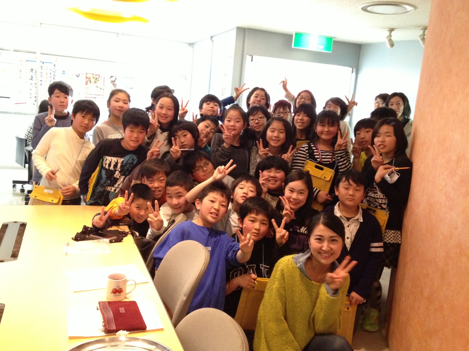 とっても元気なみんなでした。記念に一枚!南アルプス市の落合小学校の五年生のみんなです。