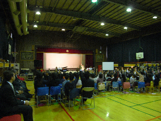 神宮前小学校に着くと、数え歌の練習する歌声が各教室の